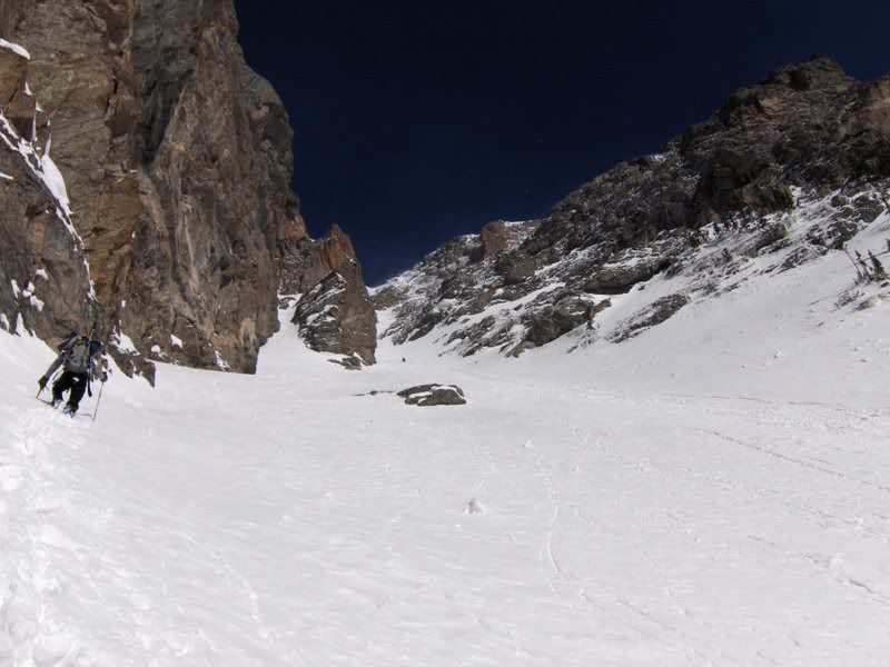 Note two skiers heading up. There were also 3 climbers that followed us up, and I met three more skier a the top of the couloir. We saw another half dozen people on the way out.